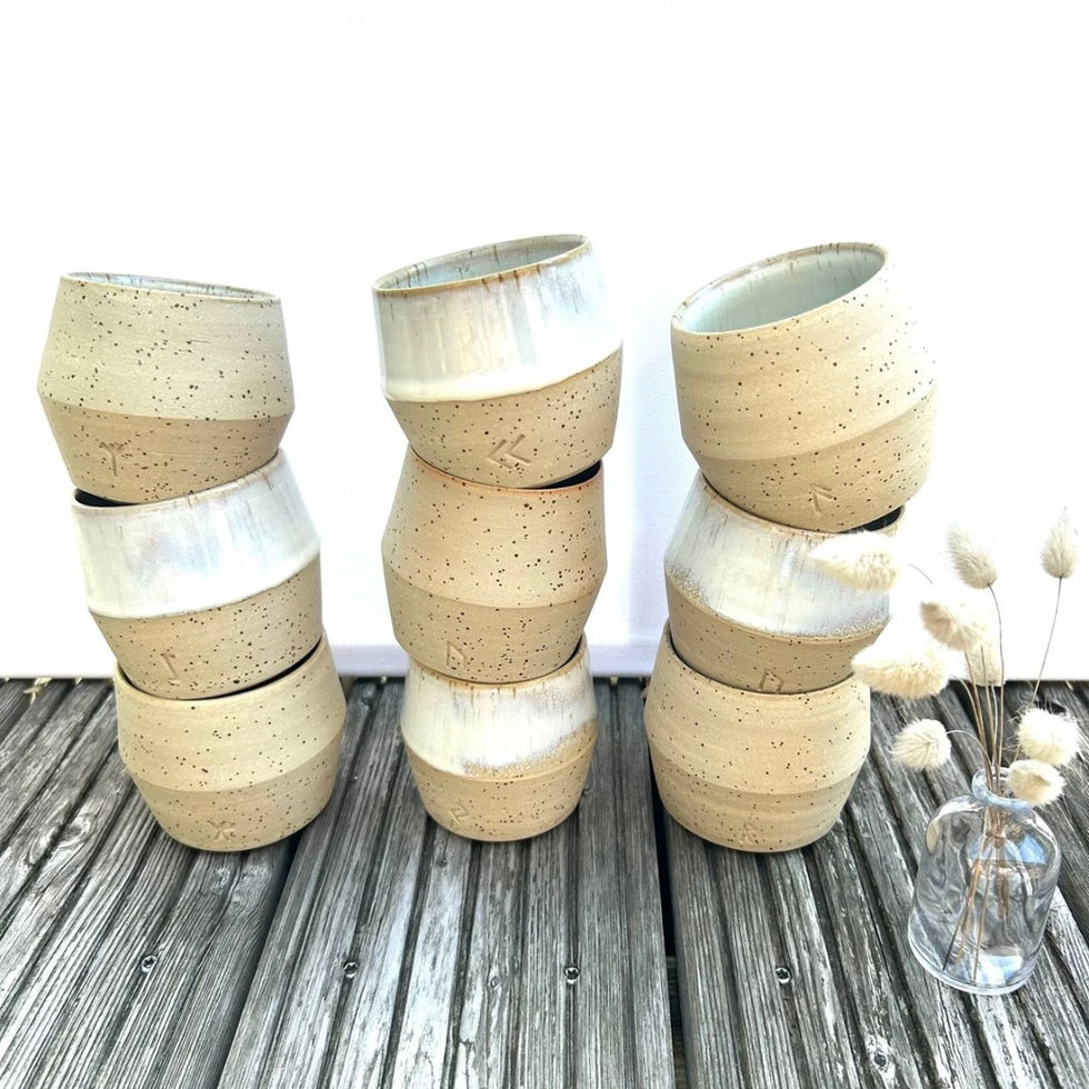 Einige meiner Becher tragen alte Symbole, die für Verbindung, Liebe oder Schutz stehen. Jedes Zeichen trägt eine eigene Energie - und macht aus dem Gefäß einen persönlichen Begleiter.